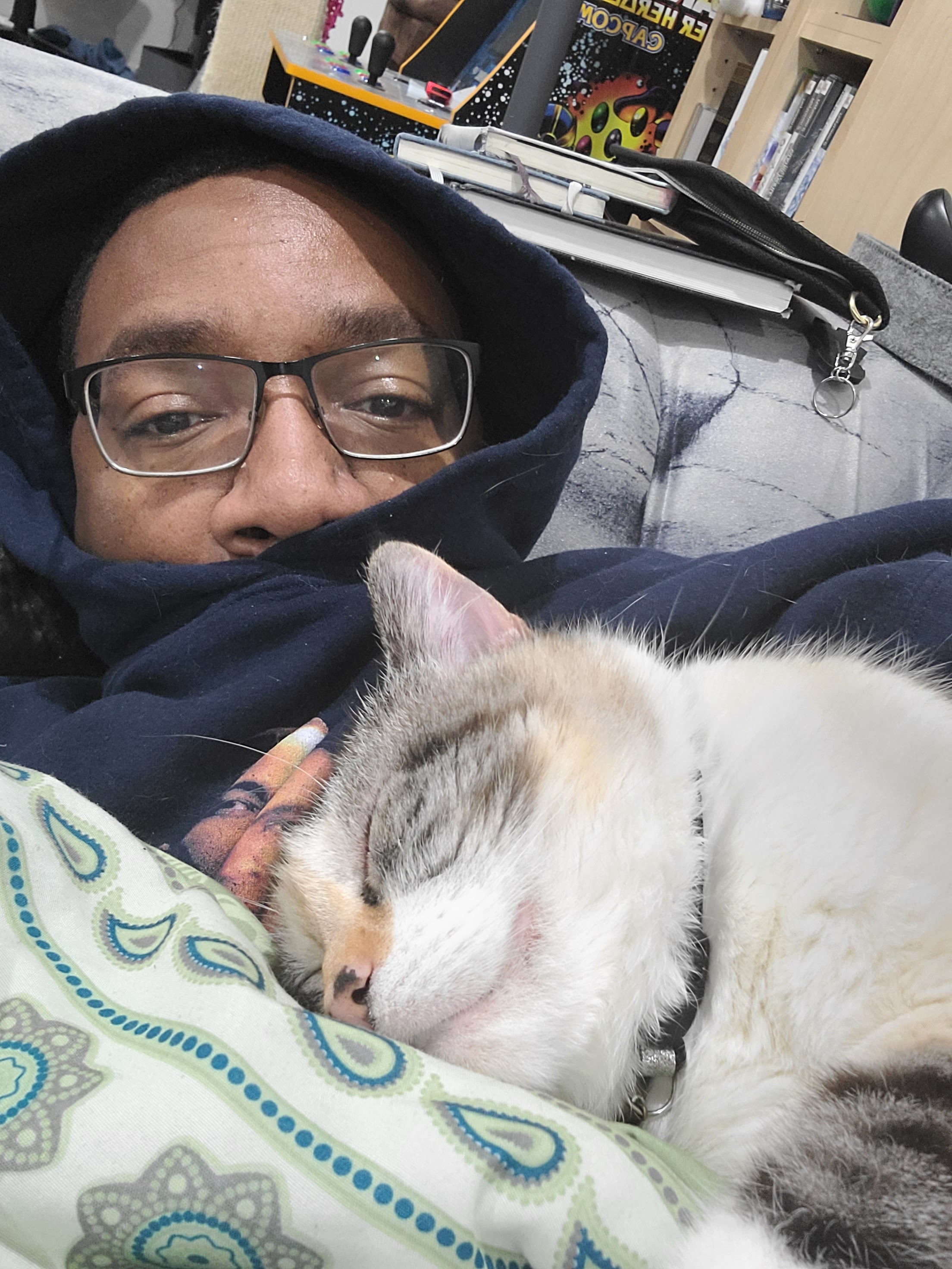 I am a teacher, writer, poet, fighting game player and general nerd. I will spend my time on this site writing about writing, reading, being Black, videogames, comics, and social justice. Sometimes all at the same time. When I’m not doing nerd stuff, I’m chilling with my spouse and being a bed for my cats.